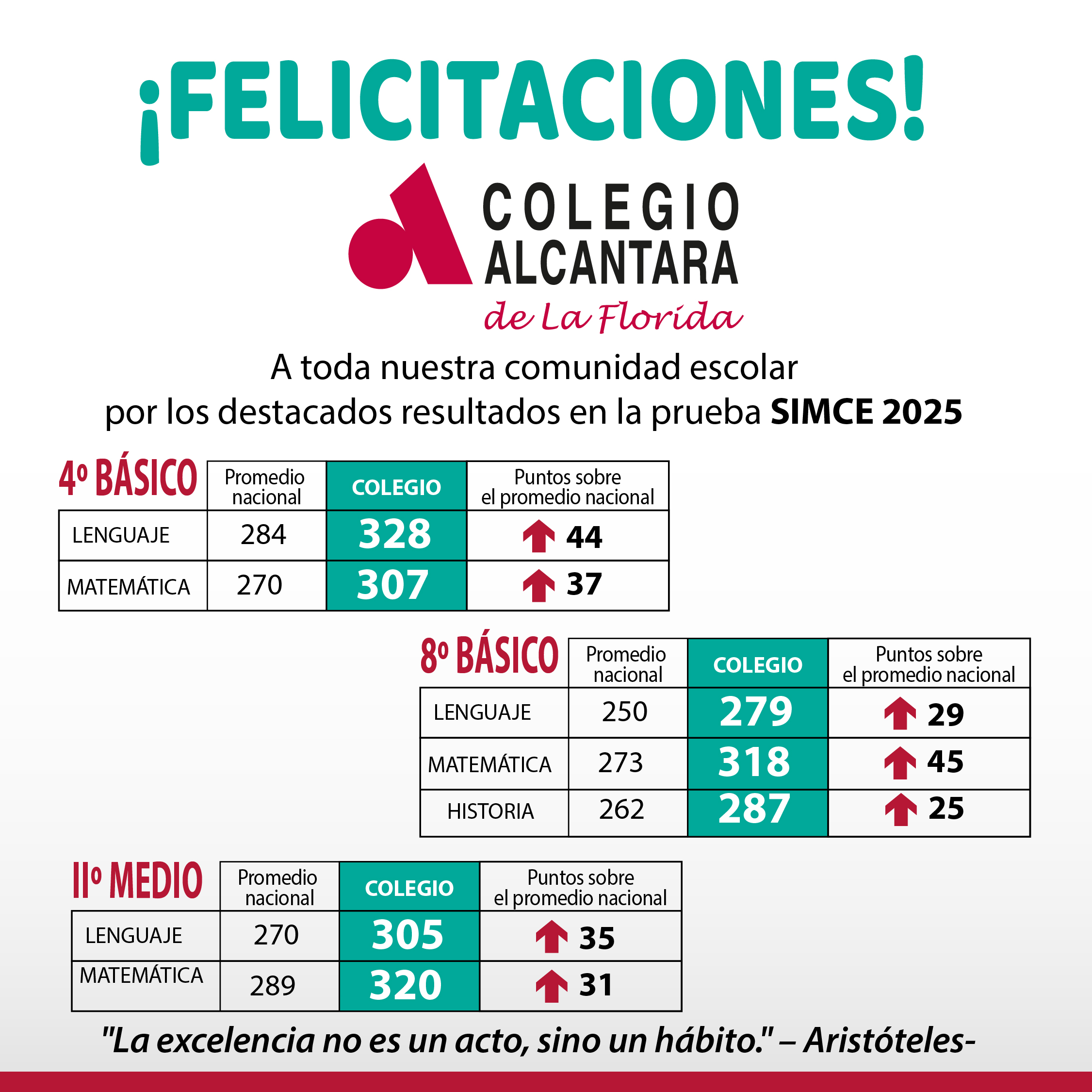 Los resultados académicos logrados por nuestros colegios, obedecen a la profunda convicción de que nuestros alumnos son capaces de desarrollar al máximo sus potencialidades y demostrar los mejores aprendizajes. Para ello se requiere de un trabajo sistemático, profesional, de calidad, de evaluación permanente de nuestros métodos de enseñanza, del monitoreo constante de los avances de nuestros alumnos, de la actitud responsable de nuestros docentes y trabajadores en general, por capacitarse y poner a disposición de sus estudiantes todas sus competencias profesionales.