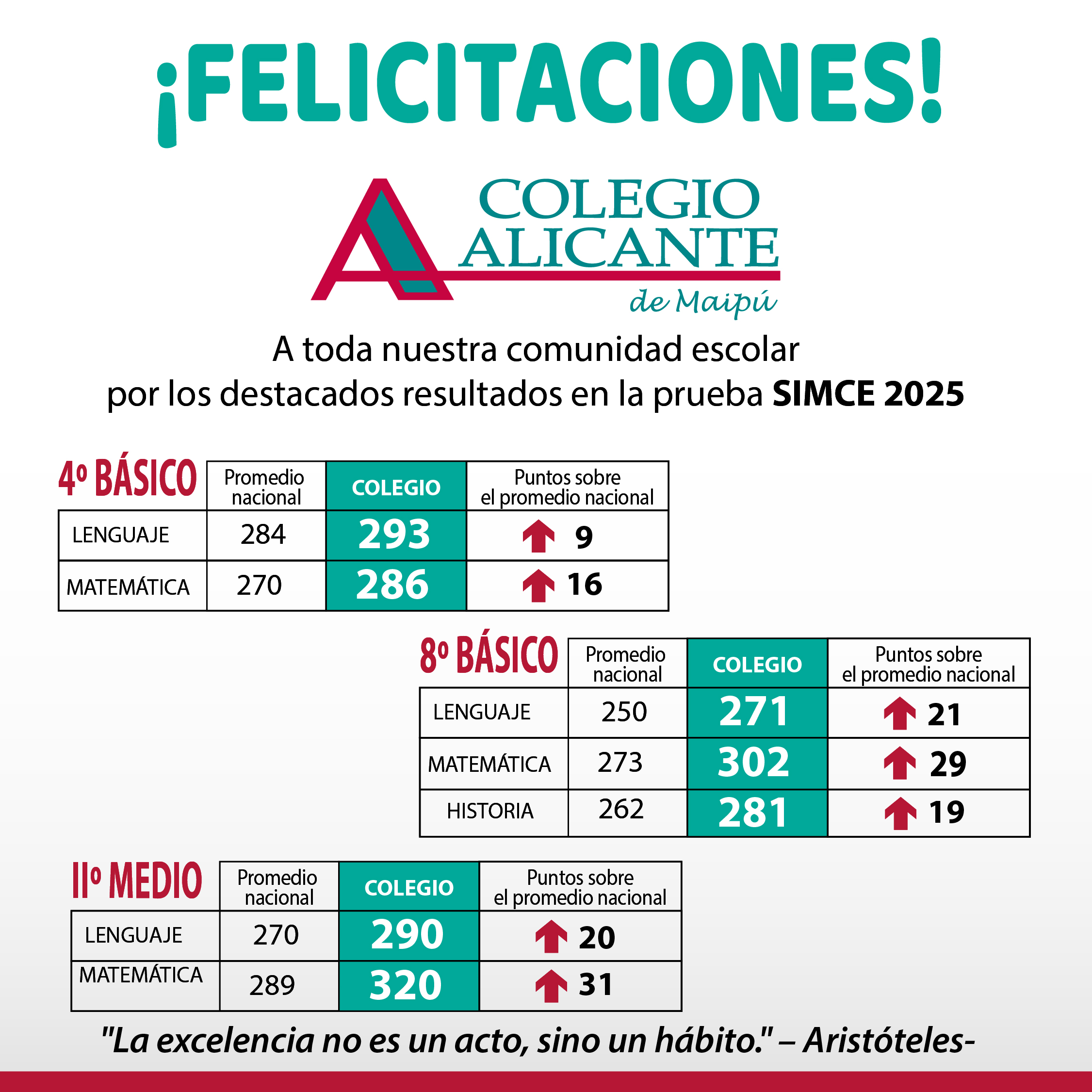 Los resultados académicos logrados por nuestros colegios, obedecen a la profunda convicción de que nuestros alumnos son capaces de desarrollar al máximo sus potencialidades y demostrar los mejores aprendizajes. Para ello se requiere de un trabajo sistemático, profesional, de calidad, de evaluación permanente de nuestros métodos de enseñanza, del monitoreo constante de los avances de nuestros alumnos, de la actitud responsable de nuestros docentes y trabajadores en general, por capacitarse y poner a disposición de sus estudiantes todas sus competencias profesionales.